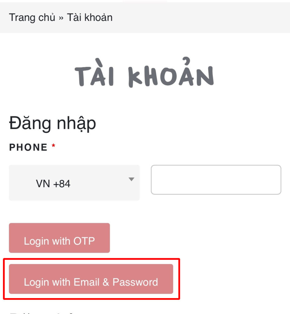 Bước 2: Sau khi vào phần đăng nhập lựa chọn mục “Login with Email & Password”