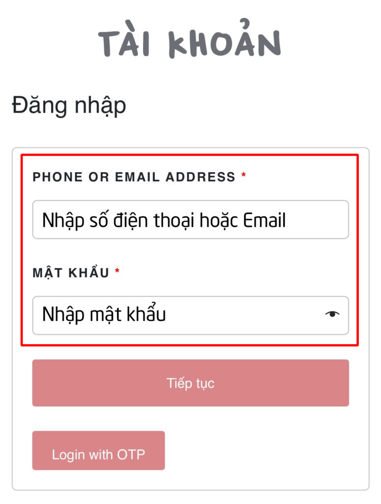 Bước 3: Giao điện đăng nhập sẽ được mở lên điền số điện thoại hoặc Email và mật khẩu được cấp vào các ô tương ứng