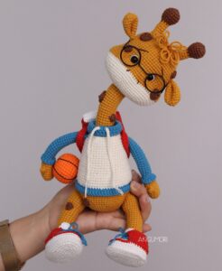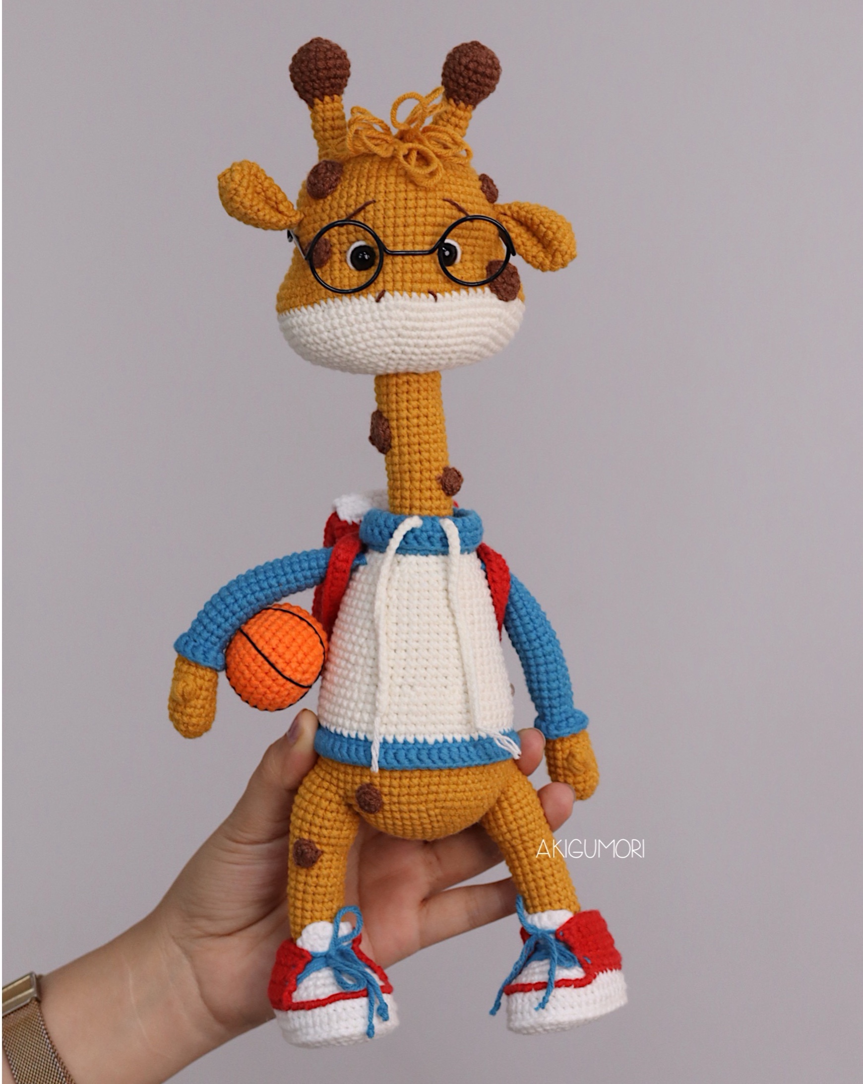Melvin Giraffe được làm thủ công hoàn toàn từ len Yarnart Jeans, nhập khẩu từ Thổ Nhĩ Kỳ và bông gòn polyester an toàn với trẻ nhỏ.